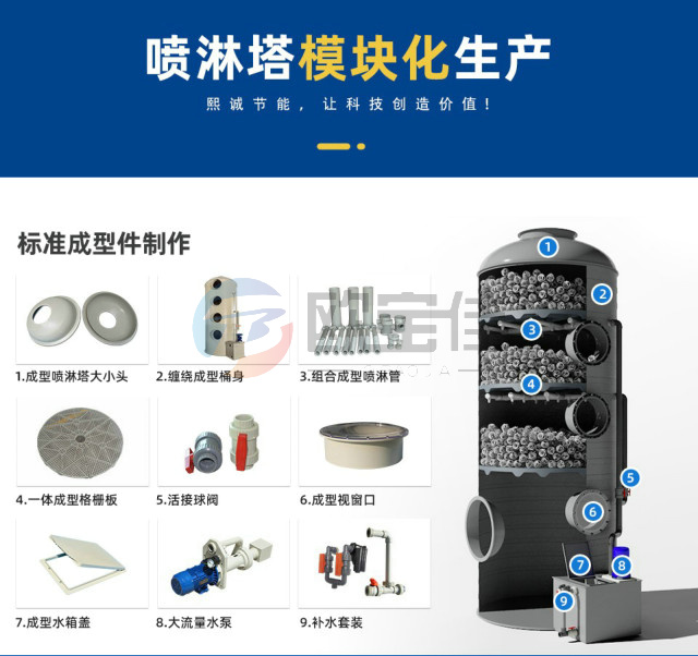 PP喷淋塔升级一体成型PP缠绕塔 1:桶身一体缠绕成型,强度更高。 2:PP缠绕塔桶体美观,实用性,气密性更好。 3:PP缠绕塔身厚度可根据实际需求定制,厚度范围8-70mm。 4:抗风压性能更强,使用年限更长。 5:适用场景更为广泛。 PP缠绕喷淋塔:专业的酸碱废气净化处理,废气除臭设备。 志邦环保PP缠绕喷淋塔标准化、模块化生产,一体成型缠绕式塔体机械强度更高,整体性好、耐腐蚀、抗渗漏性更好。