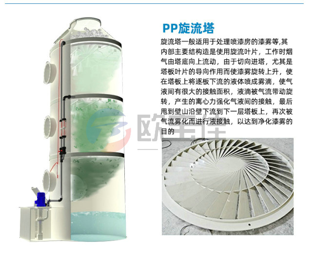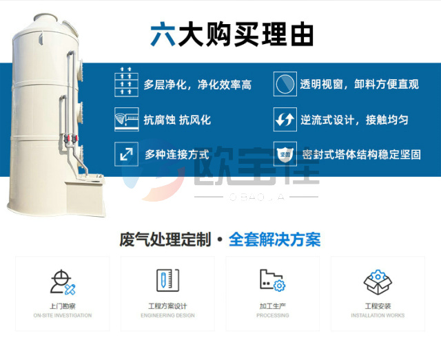 PP卧式喷淋塔也叫卧式交叉流式洗涤塔、PP卧式废气处理塔。 卧式喷淋塔适用于空间狭小的安装环境,多用于室内安装。可用于处理可溶性气体、液态微粒、固粒状物、臭氧。在工业用途上可当做冷却塔、湿润机,并适用于各种工程制程的废气处理。 PP卧式喷淋塔的工作原理:有害废气由离心通风机压入或吸入进风段,再流动至填料层,与喷淋液接触反应。喷淋系统利用清水作为循环吸收液,循环水从塔体的上部的布水器喷淋至填料层,润湿填料表面形成流动的液膜。 PP卧式喷淋塔填料层内气、液两相呈逆流流动,气液两相在塔体内逆流接触,利用有害气体在吸收剂中的一定的溶解度,可溶的部分不断融入吸收液中,达到降解气体中有害组分含量的目的。可以适当的添加药剂,有害废气不断被吸收或是被化学反应去除掉,浓度在流动过程中逐渐降低,到PP卧式喷淋塔侧部是达到吸收要求排出洗涤塔外。