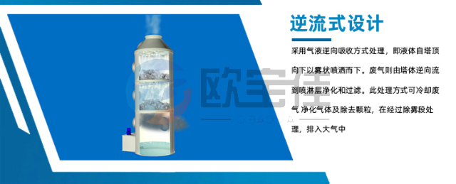 PP废气塔工作原理:对于腐蚀性气体(如酸、碱性废气)的治理,多采用液体吸收法治理。采用液体吸收法治理废气,pp废气塔具有结构简单、能耗低、净化效率高和适用范围广的特点,能有效去除氯化氢气体(HCl)、氟化氢气体(HF)、氨气(NH3)、硫酸雾(H2SO4)、铬酸雾、氰氢酸气体(HCN)、碱蒸气(NaOH)、硫化氢气体(H2S)、福尔马林(HCHO)等水溶性气体。酸雾废气由风管引入废气塔,经过填料层时,废气与吸收液进行气液两相充分接触吸收中和反应,酸雾废气经过净化后,再经除雾板脱水除雾后由风机排入大气。吸收液在废气塔底经水泵增压后在塔顶喷淋而下,最后回流至塔底循环使用。净化后的酸雾废气达到地方排放标准的排放要求,低于国家排放标准。 |