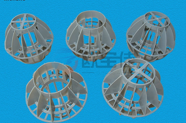 多面空心球中间镂空结构形成空隙大,不易被阻塞的特性。这种结构在空气洗涤、废气吸收、灰尘过滤等废气处理工程方面应用,具有处理风量大、阻力小的特点。由于多面空心球的空隙中有较高的滞液量,可使塔内液体停留时间长,从而增加了气体与液体的接触面积和接触时间,便废气得到充分吸收处理。
