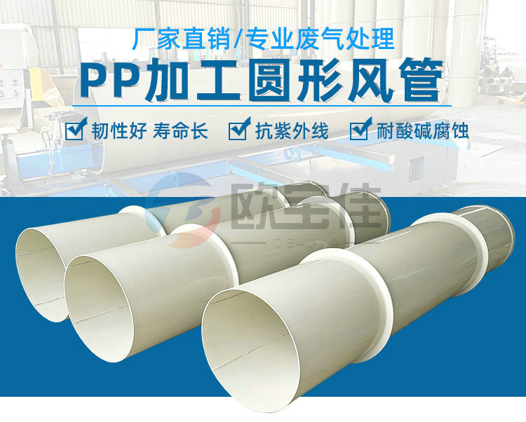 PP加工风管是由pp阻燃板材焊接加工法兰加固而成,其韧性好寿命长、耐酸碱腐蚀;绿色环保、PP无毒、卫生、可回收利用。主要适用于工业、农业、化工、环保排污等企业防酸、防腐工程,世界上许多发达国家早以普遍采用,以塑代钢已广泛应用。--志邦环保设计生产PP加工风管,志邦环保专注PP加工风管、大直径PP加工风管、主通风管道加工、PP主通风管道制造、销售和售后服务于一体的综合性废气处理设备加工企业,采购省心省力,欢迎来电咨询