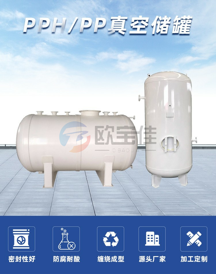 以PP为材料制造的真空计量槽、缓冲罐、高位槽,PP真空罐主要适用于化工、石油、医药、食品、油脂、御染、治金、环保、轻工等行业生产中物料的贴存、计量、緩冲等。本设备的结构形式分为立式和卧式两种,其中立式又分为挂耳立式和支脚立式。