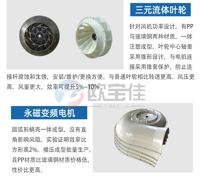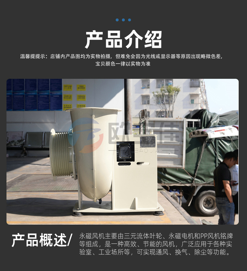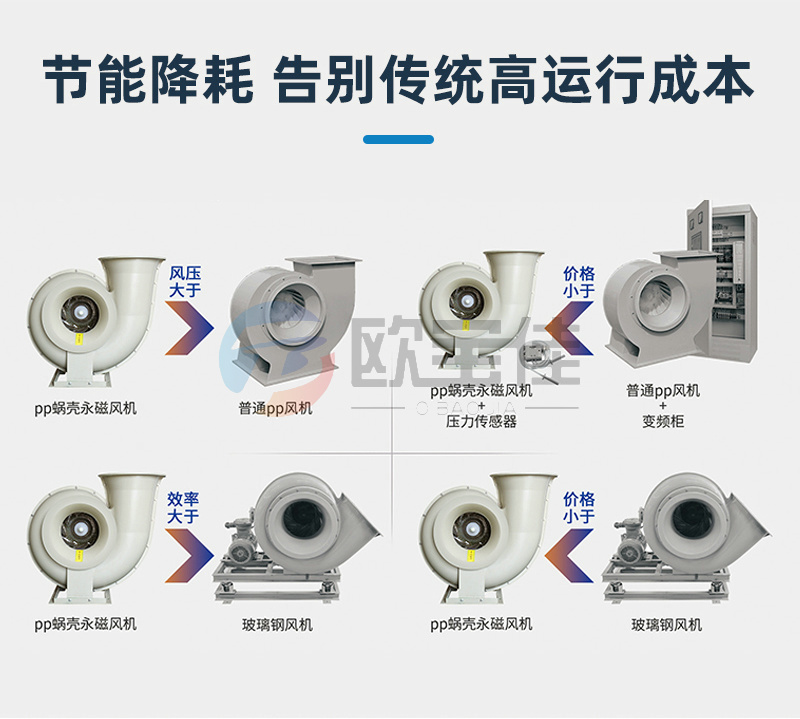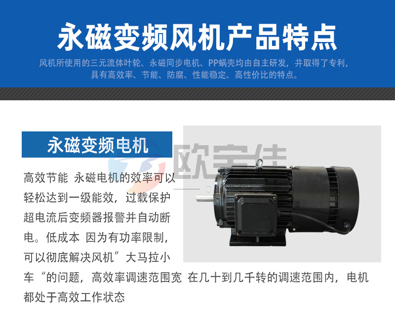节能PP蜗壳永磁风机也叫永磁变频风机,一级能效高效节能,过载保护超电流后变频器报警并自动断电。低成本可以解决风机”大马拉小车“的问题,高效率调速范围宽在几十到几千转的调速范围内,电机都处于高效工作状态。